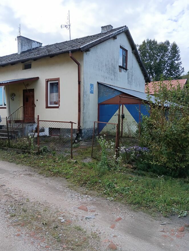 Działka na której znajduje się budynek o pow. 4,22 ara, w pobliżu druga działka po budynku gospodarczym 0,88 ara. (numery działek to 33 i 63 Geoportal)